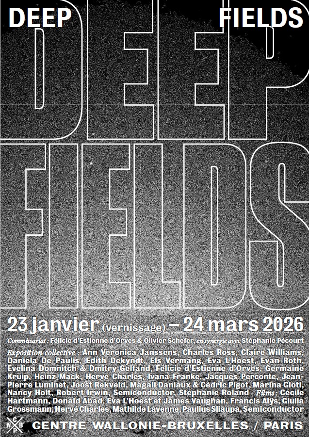 Deep Fields réunit des artistes qui sondent et explorent les champs profonds : des paysages lointains et désertiques aux champs mobiles et instables de particules. Confrontés à l’irreprésentable et à l’invisible, ils interrogent la perception, sans cesse renvoyée à ses propres limites, à ses cadres et ses frontières. Leurs œuvres sont des traces d’événements, les échos matériels et psychiques d’horizons traversés, des champs d’énergie dont le corps reste partie prenante. Ce ne sont plus des objets isolés ni des images arrêtées, mais des oscillations de champs, des vibrations magnétiques et lumineuses. Deep Fields propose d’arpenter des territoires de la physique contemporaine, d’enquêter dans les marges du visible et de sortir des espaces de contrôle.