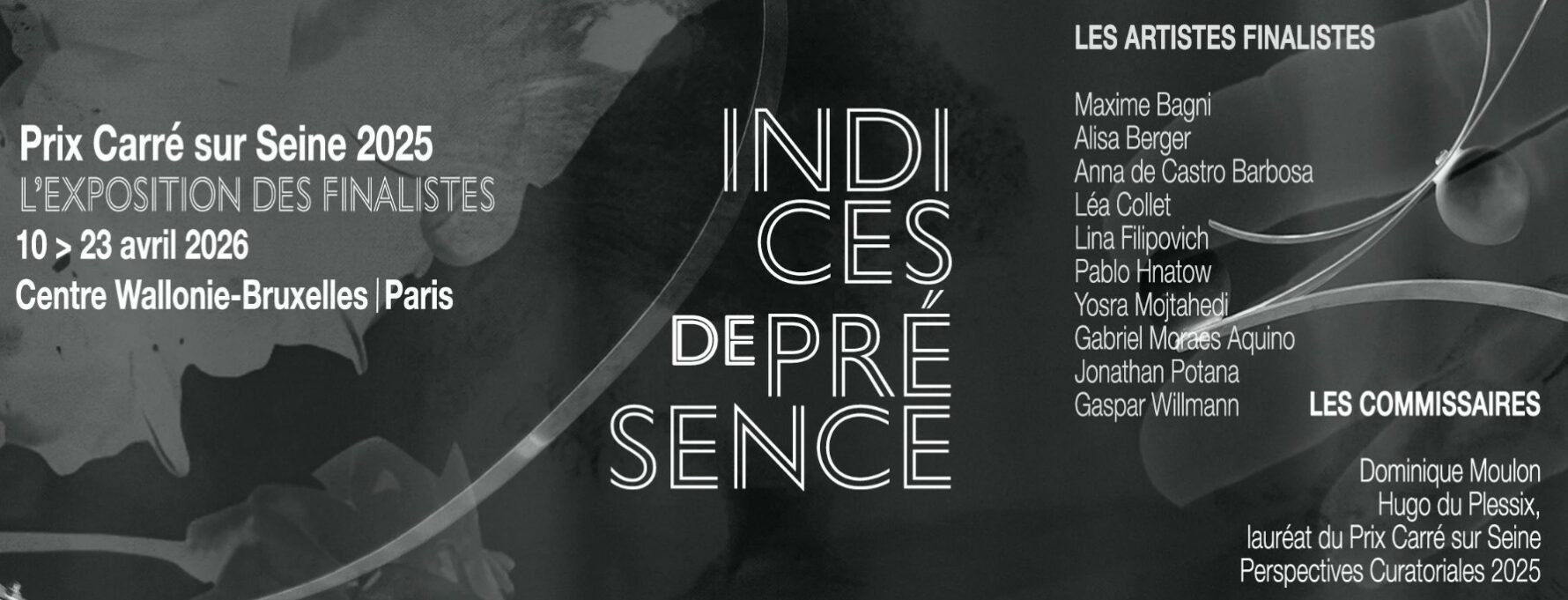 Fidèle à son engagement à contribuer à favorise une visibilité des artistes lauréat·es, Carré sur Seine poursuit son partenariat avec le Centre Wallonie-Bruxelles I Paris aka le Vaisseau, où se tiendra l’exposition « Indices de présence » au printemps 2026.