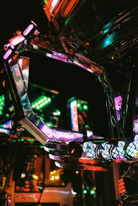 Depuis 2019, Louise Mutrel développe au Japon une recherche visuelle et narrative autour de l’univers des » dekotora » : camions tuning spectaculaires mêlant références de culture populaire et esthétiques ultra-saturées.
